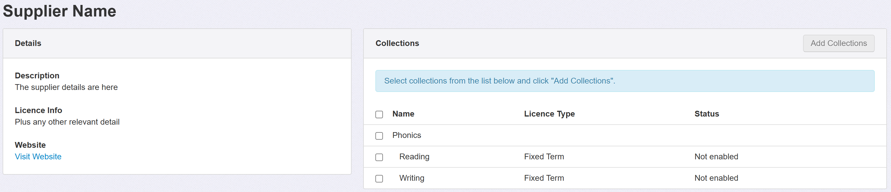 Adding Licensed Supplier collections