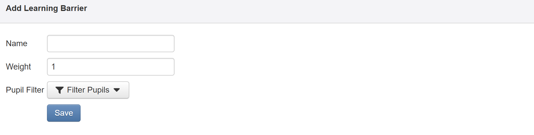 Select Learning Barriers from the Pupils section in the Admin screen.