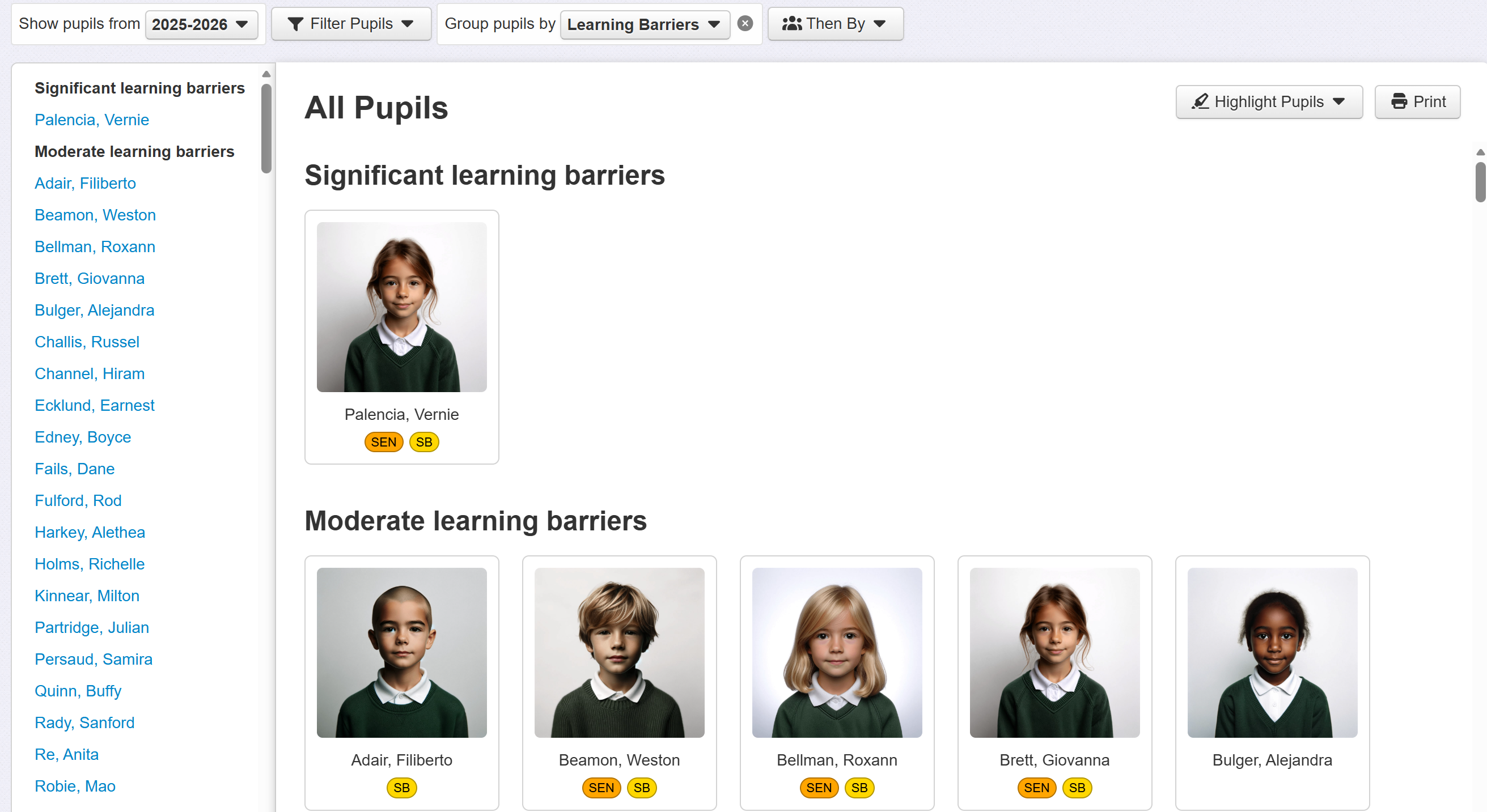 Insight includes a tool to enable you to indicate the particular learning barriers that are pertinent to your setting and quickly identify pupils to whom they apply.