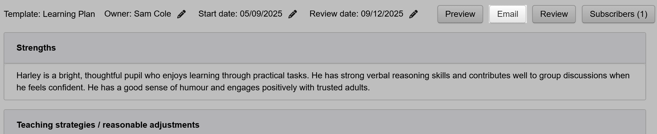Emailing learning plans from the pupil page