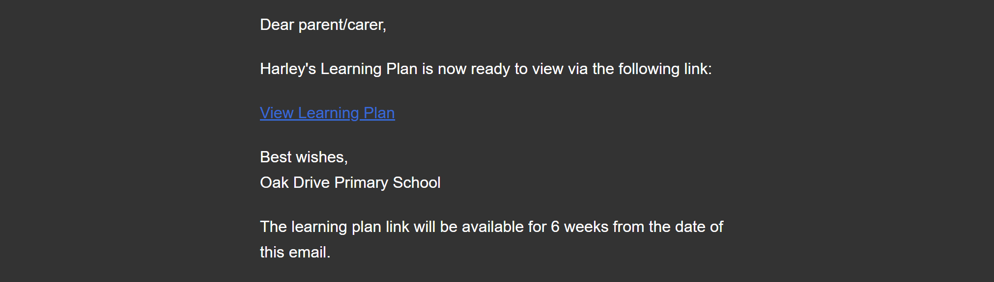 It might be useful to see what a parent receives, and how they can view the sent learning plan.