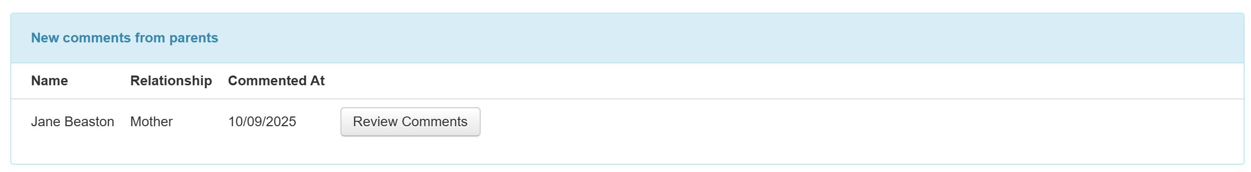 Received comments must be viewed via the individual pupil page, under the Learning Plans tab.