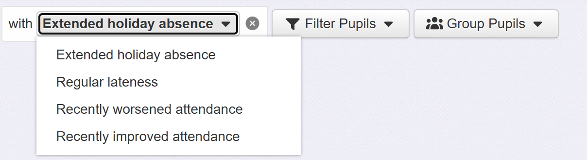 You can also group pupils by attendance.