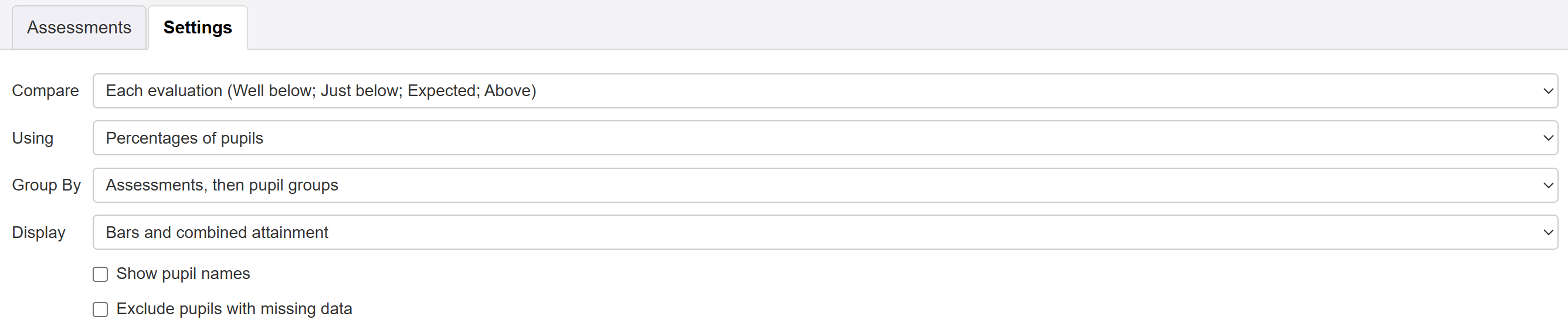 Tick Exclude pupils with missing data to remove any displayed data for those pupils without saved data for the selected display.