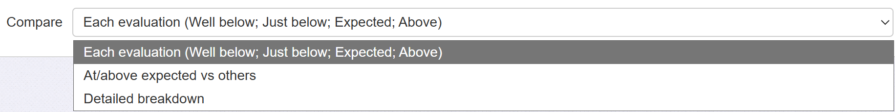 By default, the bars are split into sections to show assessments evaluated as Well below, Just below, Expected and Above.