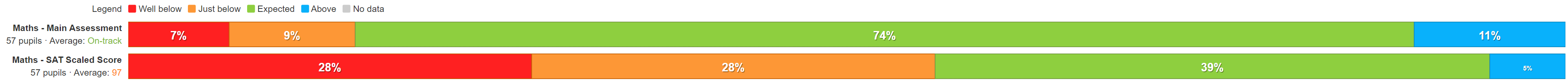 So you can see, while the approach to define the thresholds differs, the output is the same as for the SAT Scaled Scores, or Teacher Judgements - the results sit in one of four coloured bands.