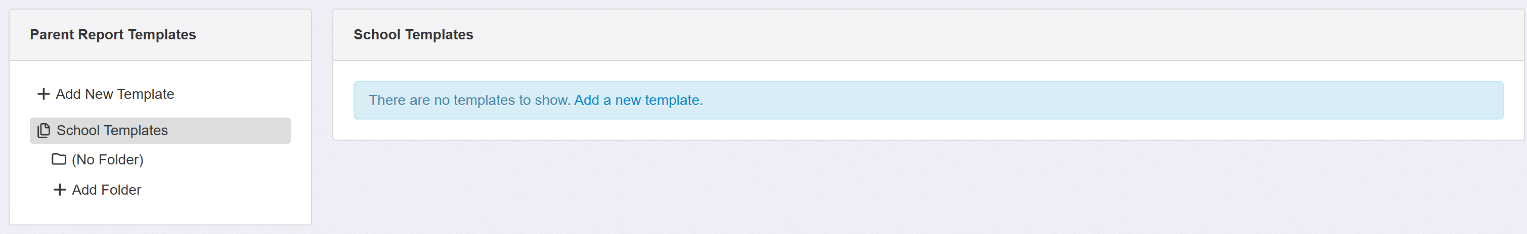 To begin, open the Parent Report Templates page in Admin.