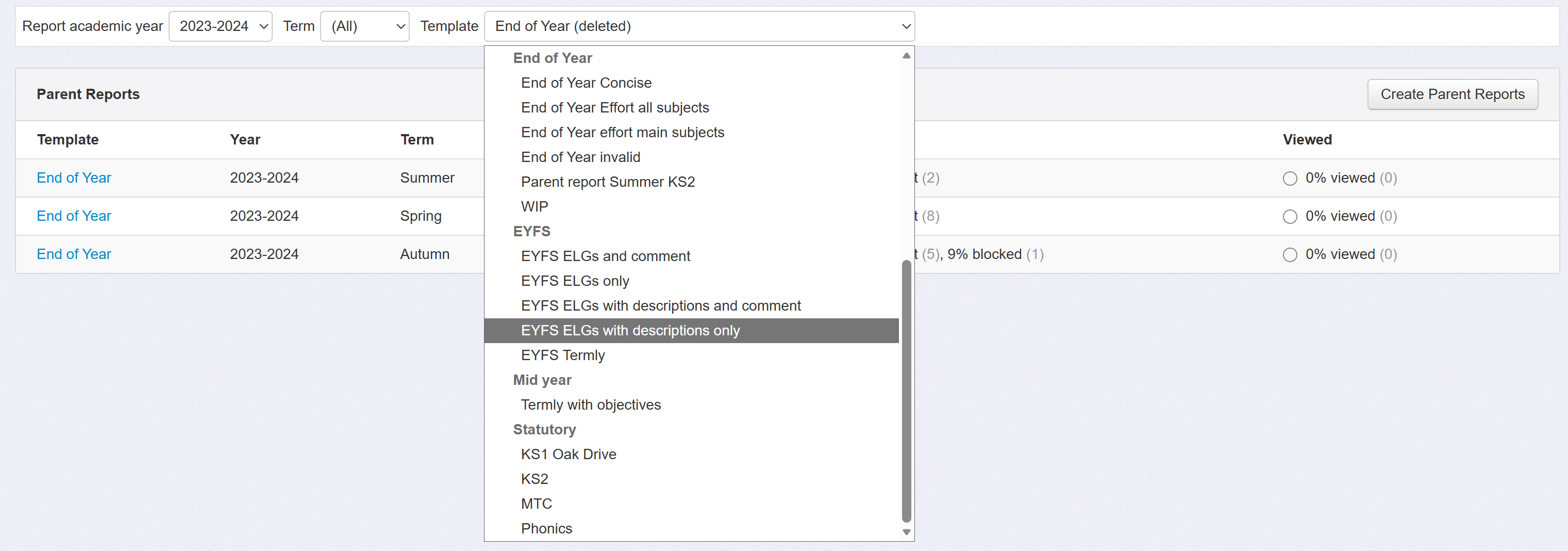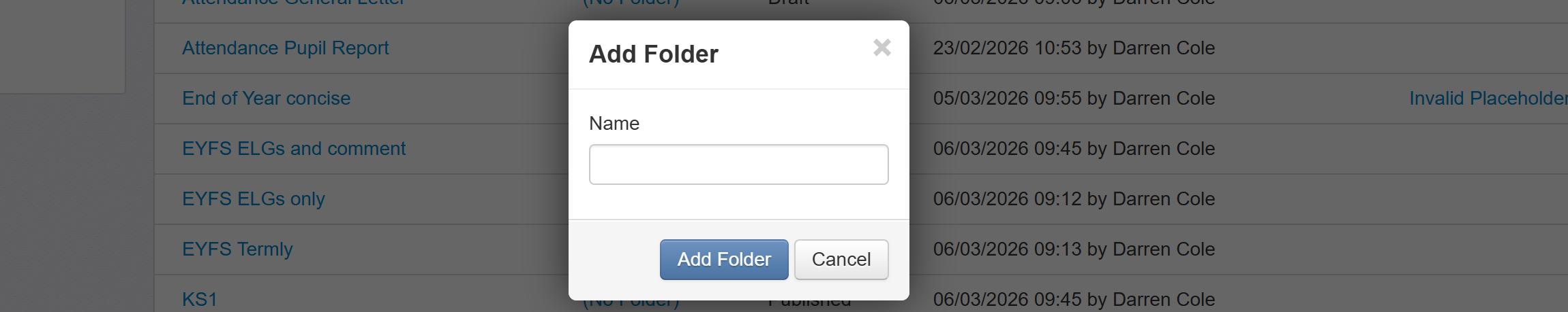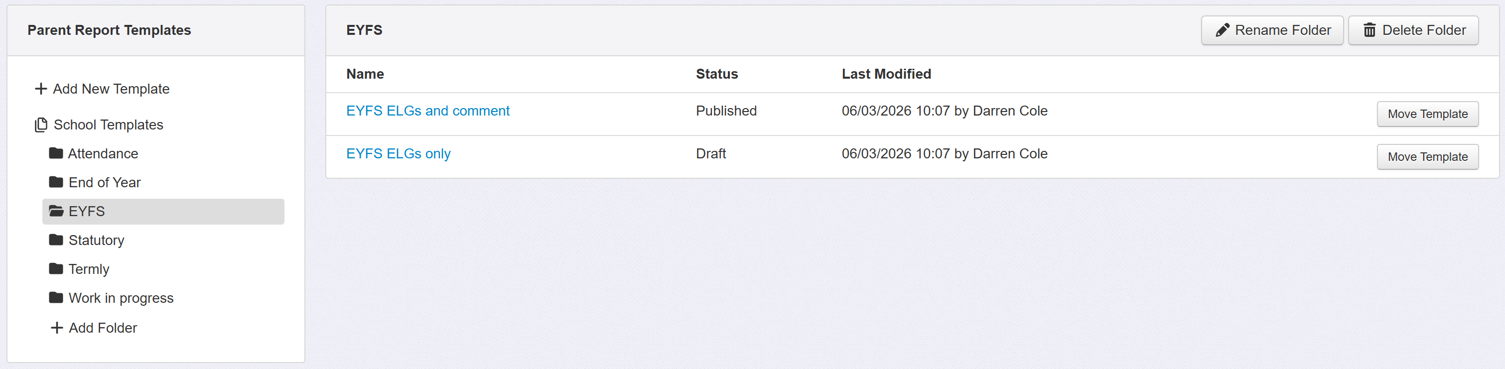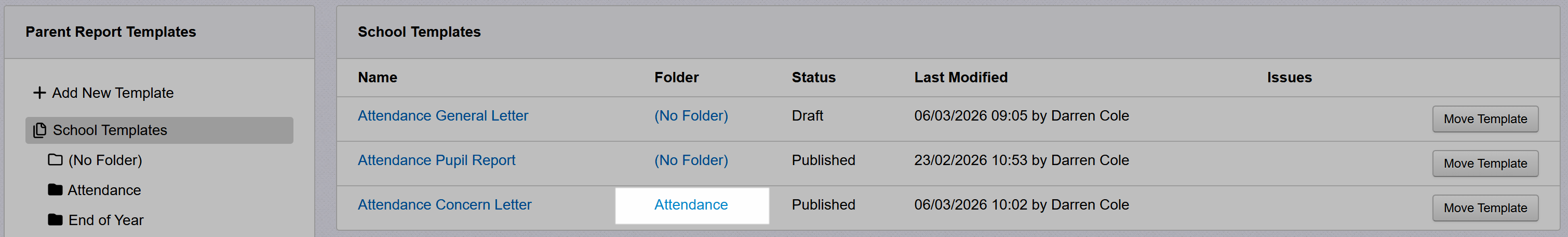 When selecting templates via Pupils or the Parent Reports report, your folder names will be used to separate and group the templates in the menus.