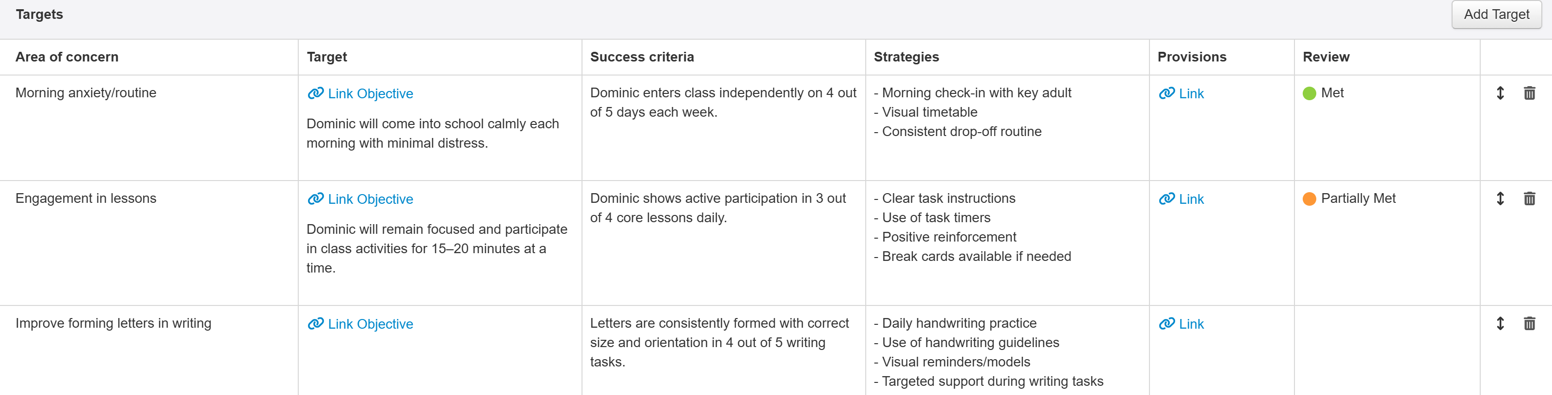 Learning plans enable you to capture and monitor information about pupils with SEND, to ensure provision is effective, and that pupils are making good progress towards their targets.