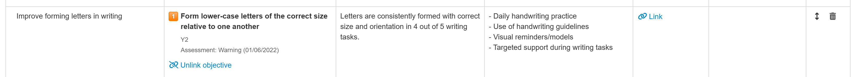 Just click Unlink objective if you want to remove it. See the section on Review, below, for how you can alter the assessment against the objective.